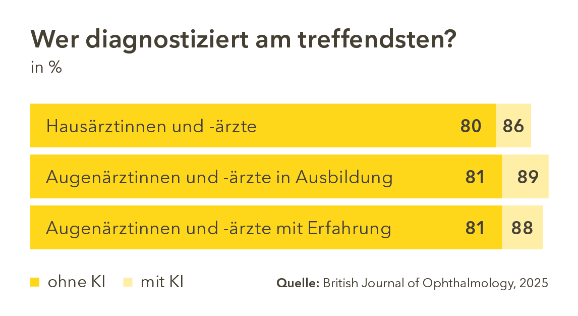 Ich möchte drei Dinge herausstellen. Erstens kann KI den Dokumentationsaufwand reduzieren, denn Ärztinnen und Ärzte sitzen stundenlang am Computer. Das nennt man Keyboard Liberation: den Menschen zurück zum Menschen bringen. Zweitens kann KI Bilder voranalysieren, also kleinste Veränderungen in der Netzhaut erkennen, die ein Mensch leicht übersieht. Drittens kann sie Patientengeschichten zusammenfassen, sodass wir schneller verstehen, was wirklich wichtig ist.